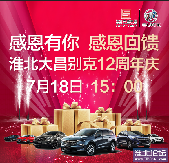 我们即将迎来了十二周年,为了庆祝这一特殊的时刻,2020年7月18日15点整, "感恩有你 淮北大昌别克十二周年庆"庆典将在展厅隆重举行。