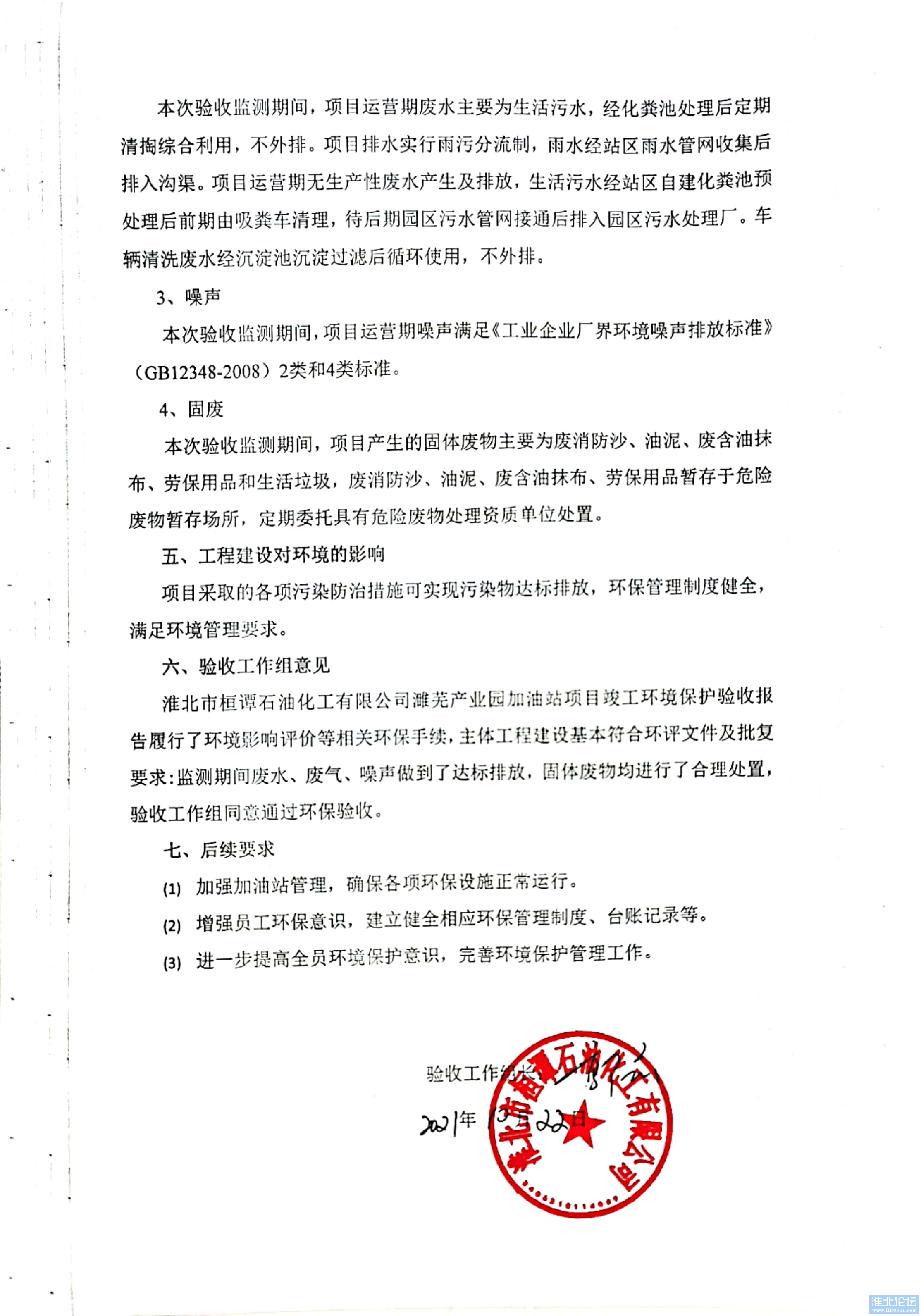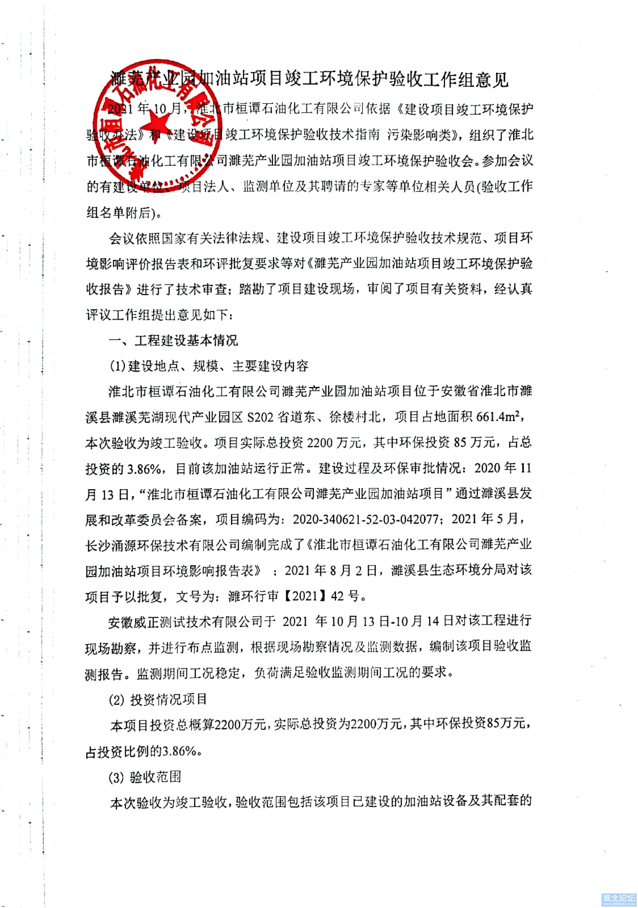 附件:淮北市桓谭石油化工有限公司濉芜产业园加油站项目竣工环境保护验收工作组意见