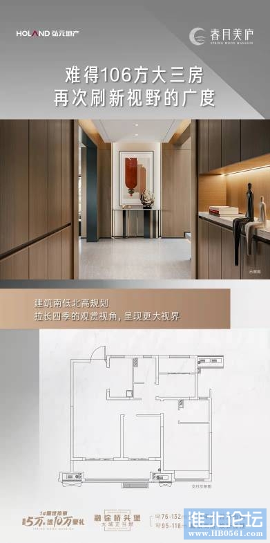 目前淮北106m左右能做到三房两厅两卫,这个面积做两个卫生间,而且还保障尺度与舒适,在整个淮北找不出第二家,就我们一个项目有。