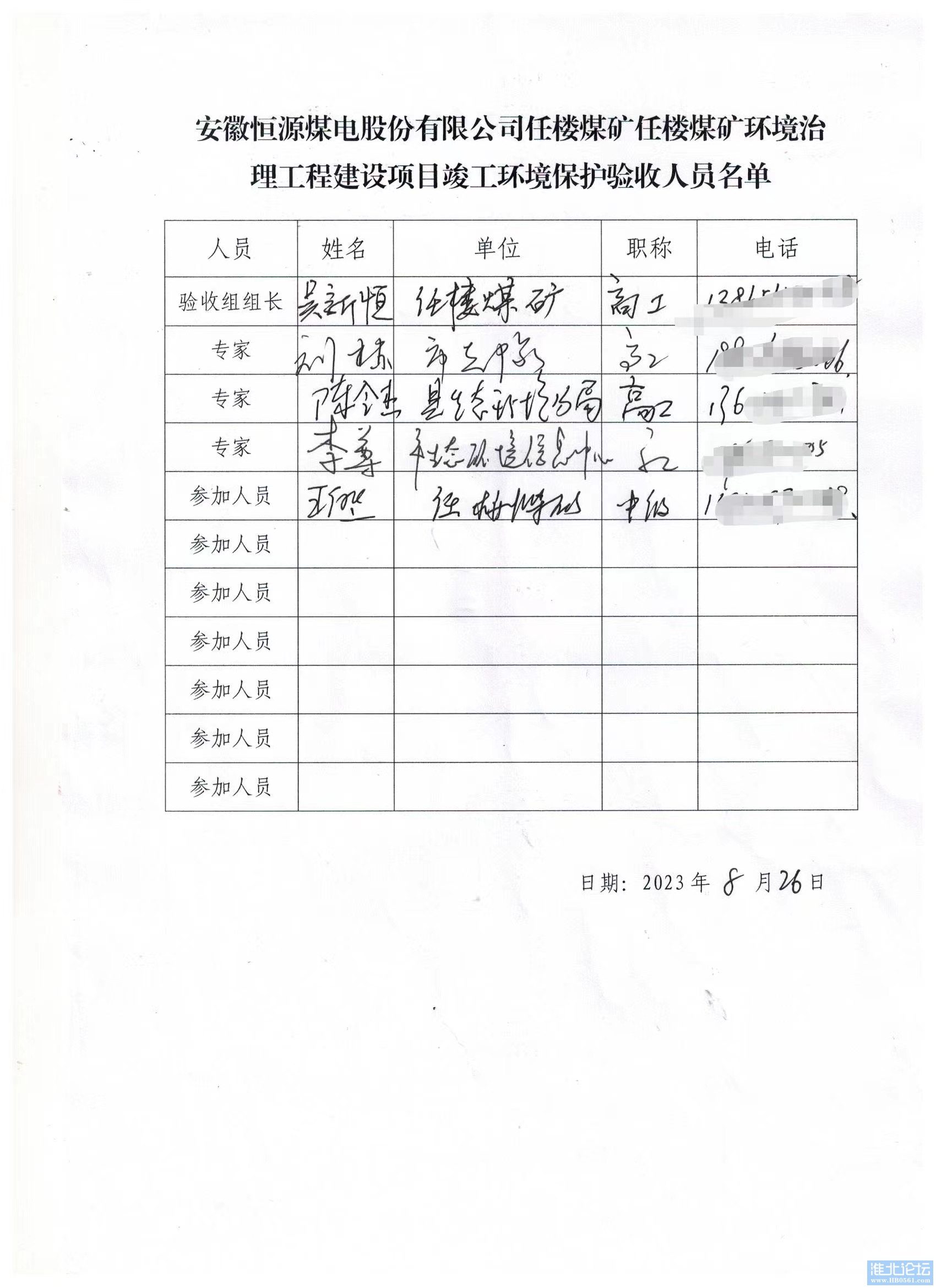安徽恒源煤电股份有限公司任楼煤矿任楼煤矿环境治理工程建设项目竣工环境保护验收