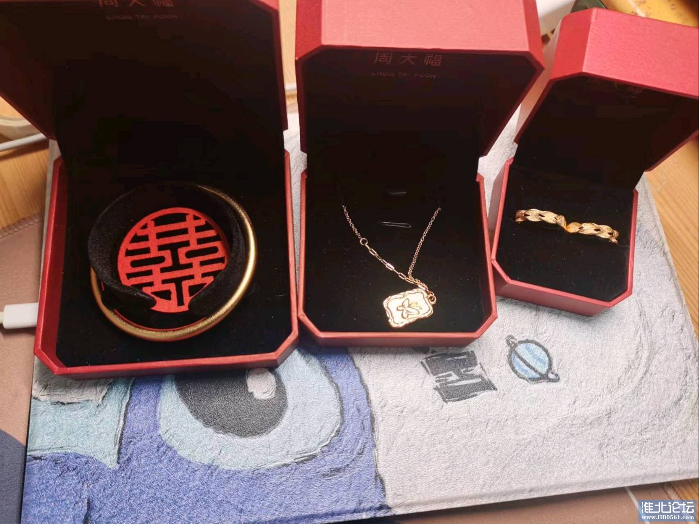 订婚三金摆台,越南沙金有分量,周大福盒子